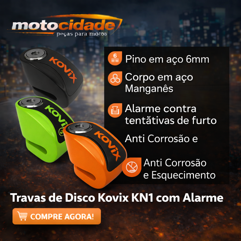 A Kovix é uma marca reconhecida mundialmente no segmento de segurança para motocicletas. O modelo KN1 combina estrutura metálica resistente, tecnologia de detecção de movimento e praticidade no uso diário, tornando-se uma excelente opção para quem busca proteger a moto em estacionamentos, garagens ou vias públicas.