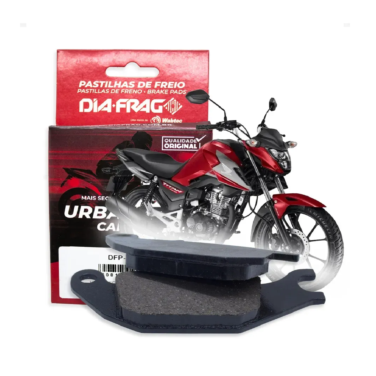 Pastilha de freio traseira da marca Dia-frag para CG 160 Titan ABS. Especificações: Marca: Dia-frag; Tamanho: Standard; Material: Carbono; Encaixe: De acordo com especificação original; Aplicação: Honda cg titan 160 abs 2025 em diante. OEM: 06435-K07-902